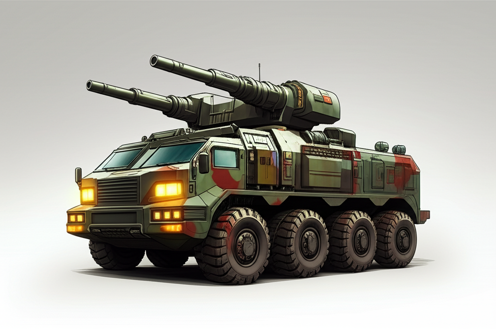 • Teknologi Penggerak Semua Roda (All-Wheel Drive): Konfigurasi 8×8 atau 10×10 memastikan daya cengkeram maksimal di medan off-road yang ekstrem. Suspensi independen dan ban run-flat memungkinkan kendaraan terus bergerak meskipun beberapa ban rusak.